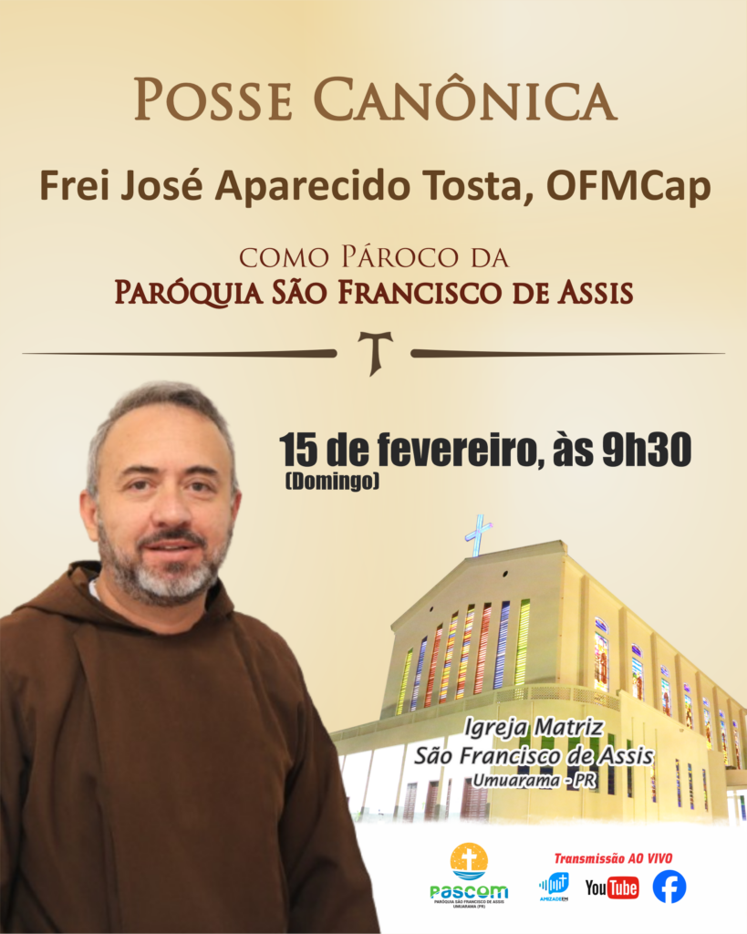 Posse Canônica do novo pároco da Paróquia São Francisco de Assis A Paróquia São Francisco de Assis acolhe, com alegria, Frei José Aparecido Tosta, OFMCap, que assume a missão de