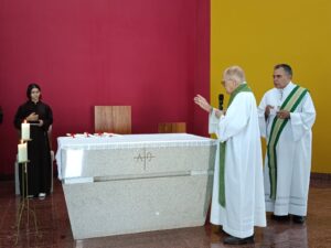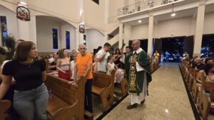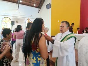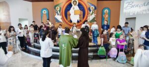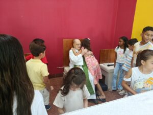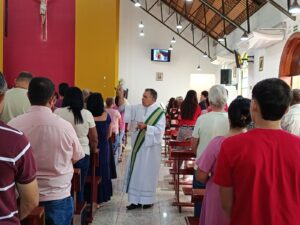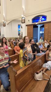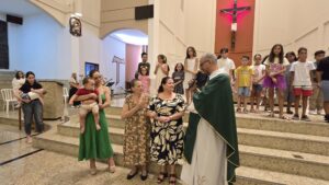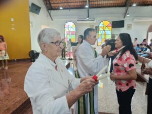 Também foi realizado um momento muito significativo de oração com a Bênção das Mochilas, estendida aos professores, educadores e a todos que atuam na área da educação. Em clima de acolhida e esperança pelo início do ano letivo, a comunidade confiou a Deus o caminho de estudantes e educadores, pedindo sabedoria, proteção, perseverança e frutos abundantes ao longo do ano.